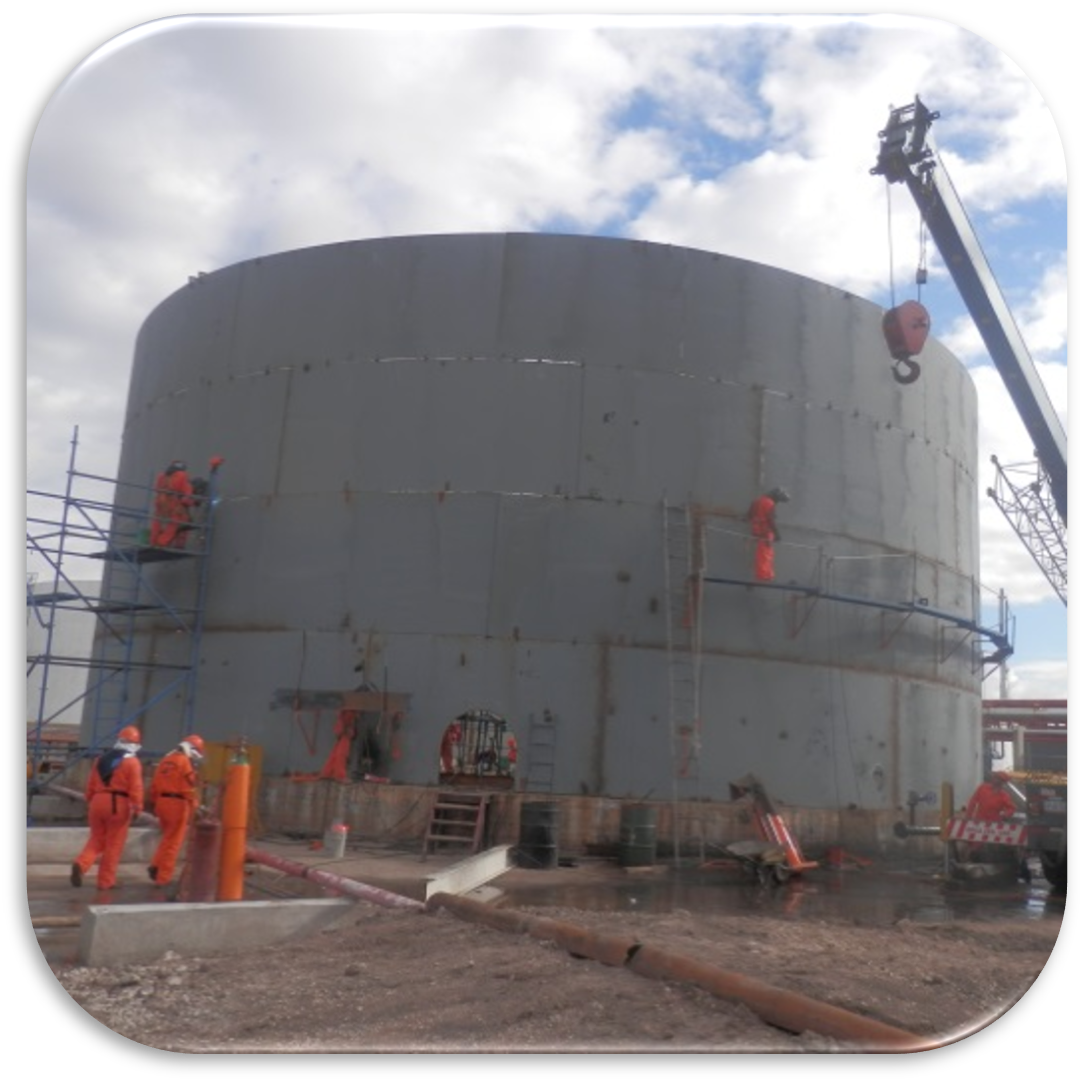 - Montaje, conformado, plomeo, nivelado, punteo y soldadura de placa de acero al carbón.