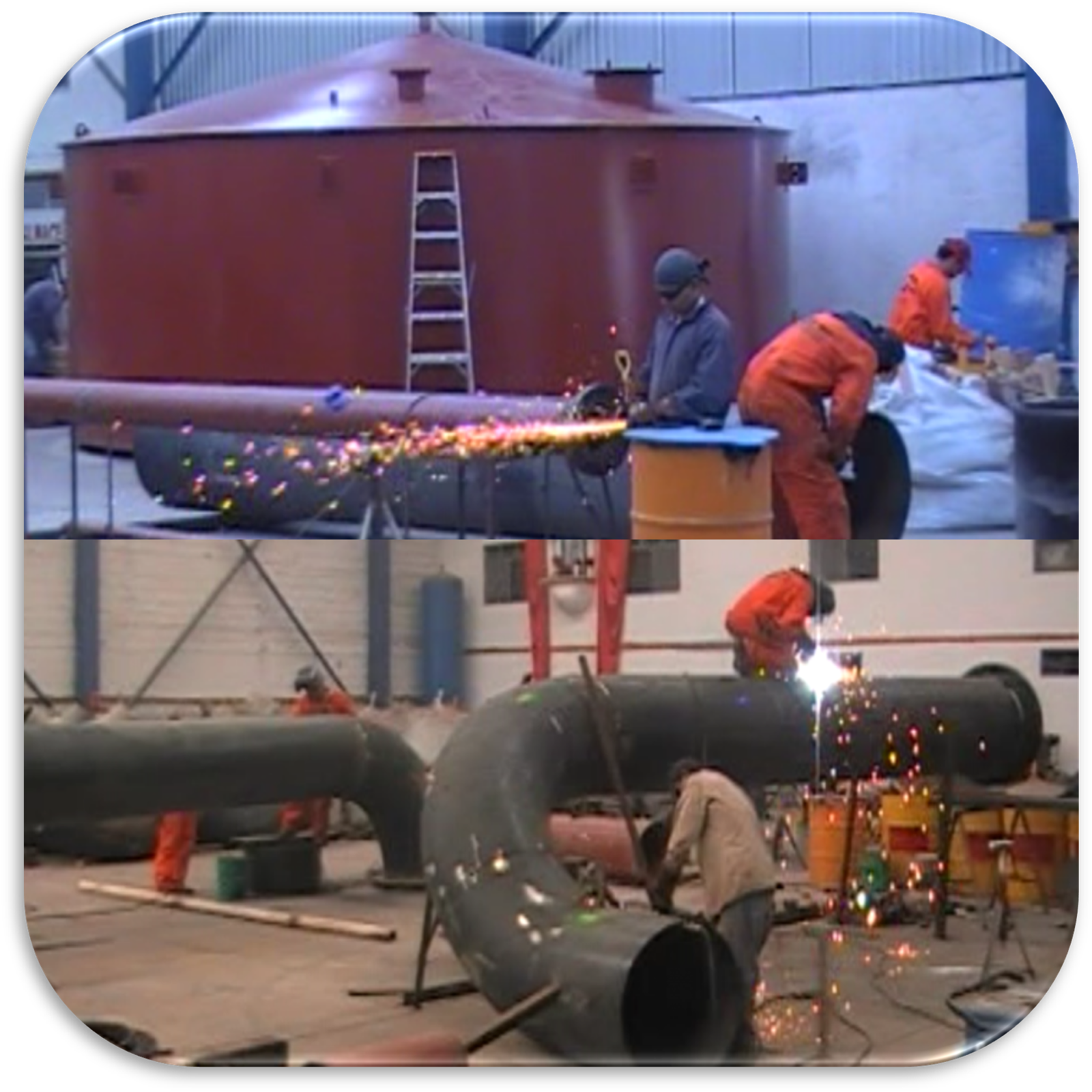 - Montaje, conformado, plomeo, nivelado, punteo y soldadura de placa de acero al carbón.